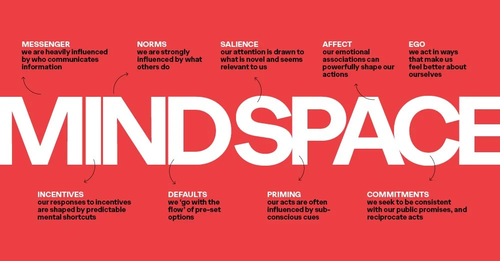 MINDSPACE is a behavioural framework created by the UK Government’s Behavioural Insights Team. It's essentially a cheat sheet for understanding what actually influences people’s decisions beyond what they say they’ll do.