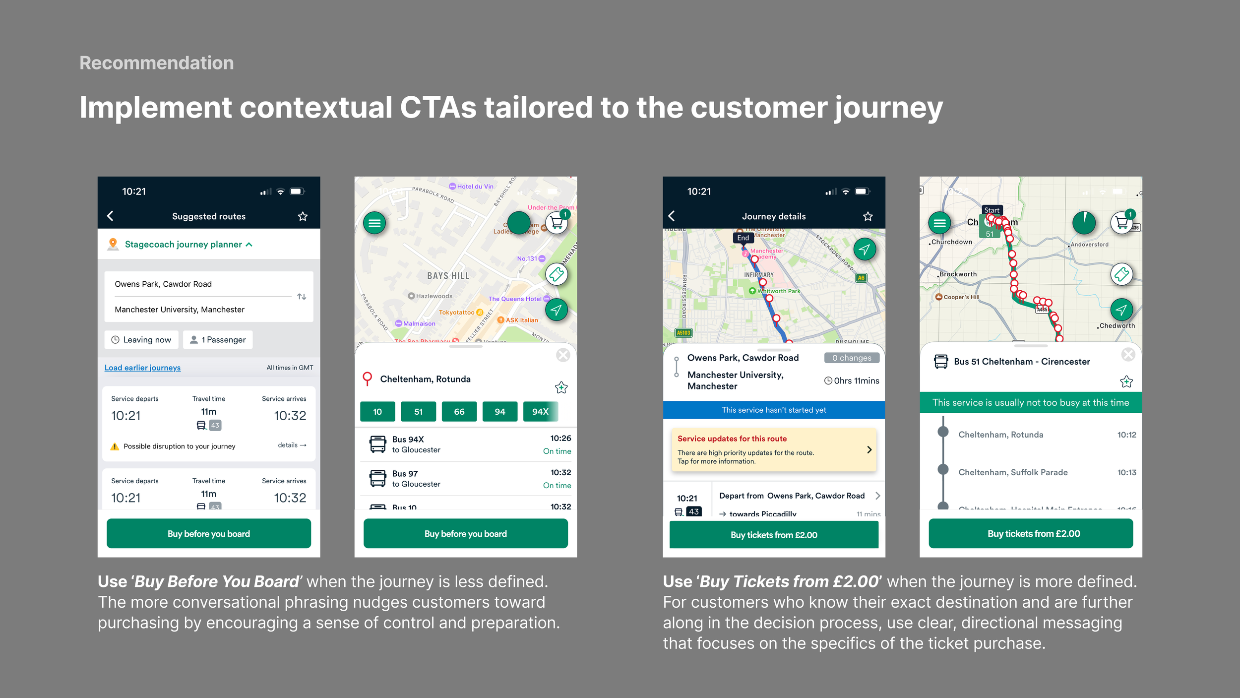 We weren’t just trying to make things more usable, we were designing for conversion. The aim wasn’t just to help users complete a task, but to nudge them into a commercial action that aligned with Stagecoach’s business goals.
